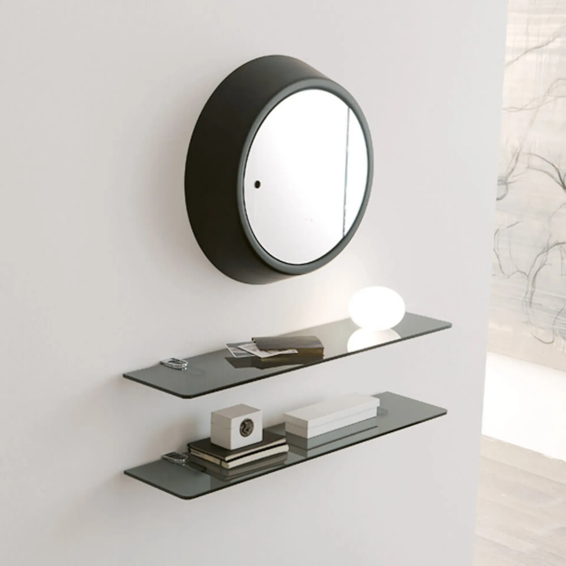 The compositions of great aesthetic value by the Ponti Terenghi brand enhance the environment with their colors and taste, recreating specific furnishing atmospheres. Accessories and shelves personalize the home decor, occupying space in a useful way and making it cozy and beautiful to look at. In the store, you can touch the quality of the company's modern glass shelf models firsthand, just like this one proposed in the photo. Very versatile and multifunctional, modern glass accessories serve different functions: they enhance the functionality and aesthetics of the room.