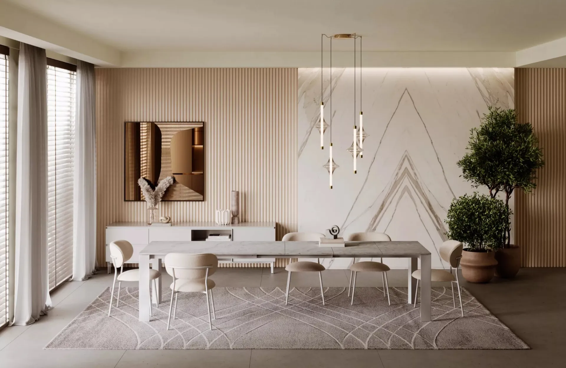 The Bontempi brand represents quality and style: visiting us means relying on the brand's years of experience and passion. To best enrich the interior spaces, all it takes is a touch of style achieved by incorporating some high-quality Accessories among the other pieces of furniture. From the bedroom to the living room, these accessory elements are essential objects to perfectly enhance the practical qualities and aesthetic value of the spaces. Refinement and practicality characterize the brand's multiple solutions, including this proposal of the Wave Rug by Bontempi in fabric with a great decorative impact.