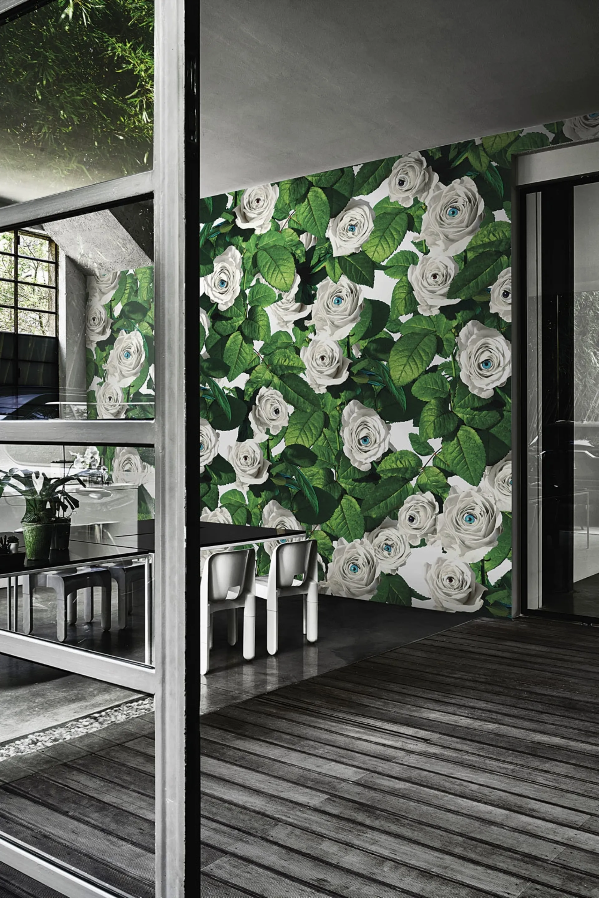 Click and get information on a rich catalog of vinyl wallpaper designs: the Eyes & Roses model by London Art is waiting for you!