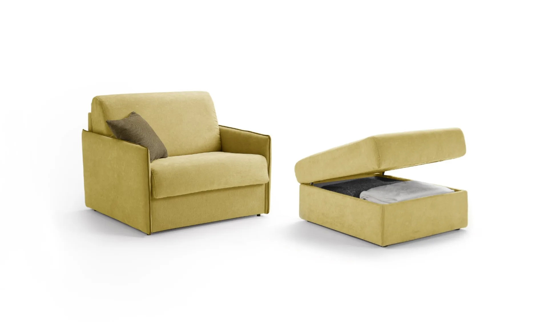 Completing the mood of your home is no small feat: Armchairs come to our rescue. The Next sofa bed armchair by Excò: all products from the brand are guaranteed to last over the years, with quality finishes and coverings, defined shapes, and a unique design. A rich catalog of modern armchairs awaits you in our showroom. In the image, you can see the Next sofa bed armchair by Excò, a specialist in the production of sofas and armchairs for the living room and other areas of the home.