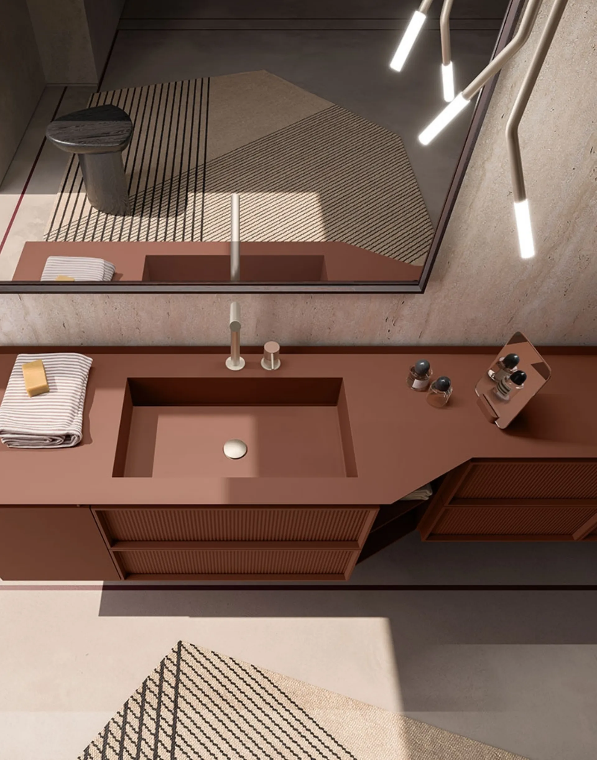 Suspended bathroom furniture Des Evolution Sandstone 01 by Cerasa: discover the Bathroom Furnishings in matte lacquer design and furnish your bathroom.