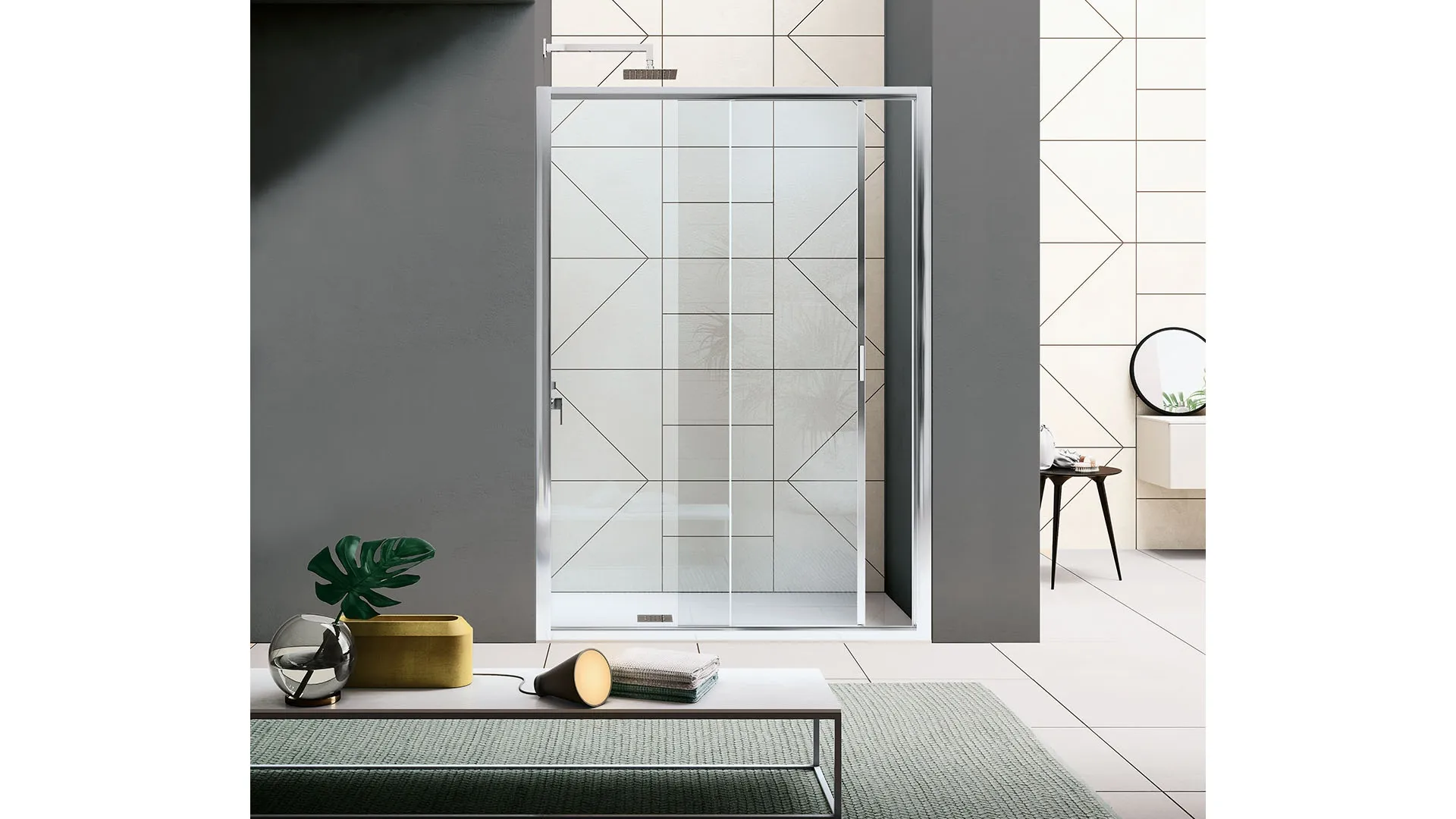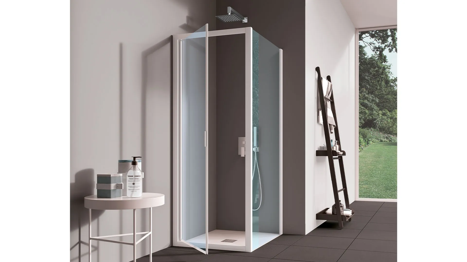 Inda's glass shower enclosure: click and discover the modern Rapid bathroom furnishings for the wellness room.