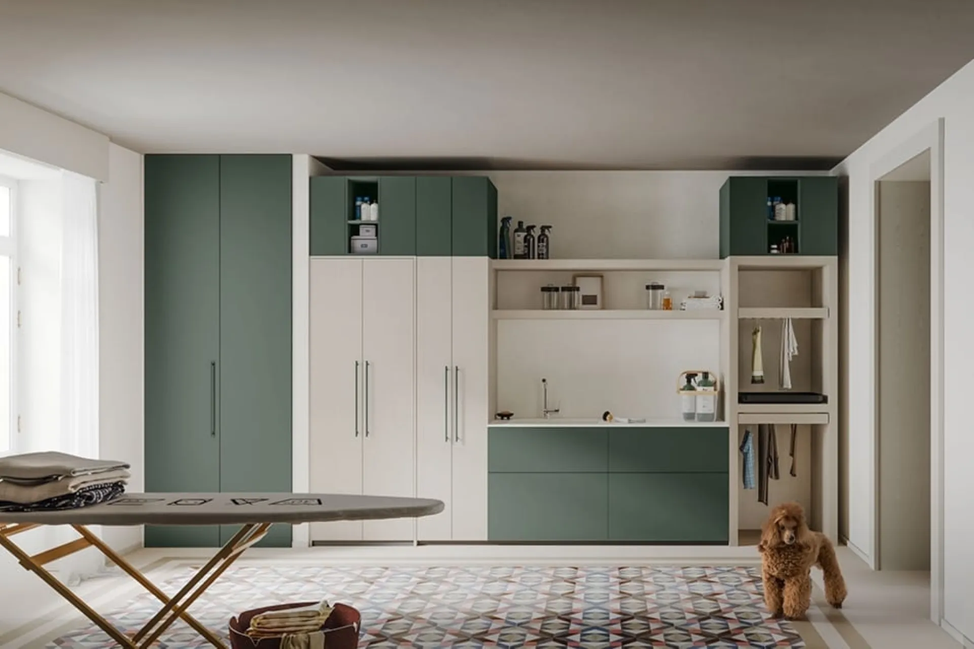 Discover more about modern bathroom furniture: bathroom furniture for laundry rooms in melamine like the Regola 03 model by Cerasa is waiting for you.