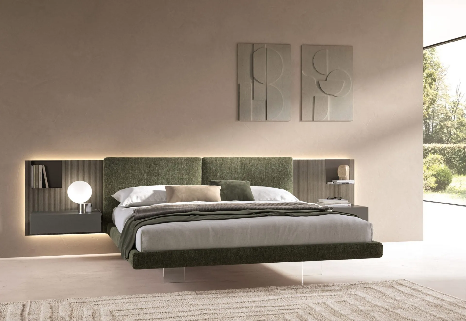 If you want to create an intimate and relaxing atmosphere, the model shown in the photo is perfect for you: in the bedroom you will need to create a relaxing atmosphere to recharge your mental and physical energies every night. If you want to furnish modern spaces, we are waiting for you to show you our Home Furnishing profile to create your tailor-made concept. Discover in our showroom a wide range of upholstered beds, furniture, and accessories for the bedroom from the best manufacturers. Reliability of materials and great comfort are the aspects that characterize all products of the brand, including the fabric bed in the image.