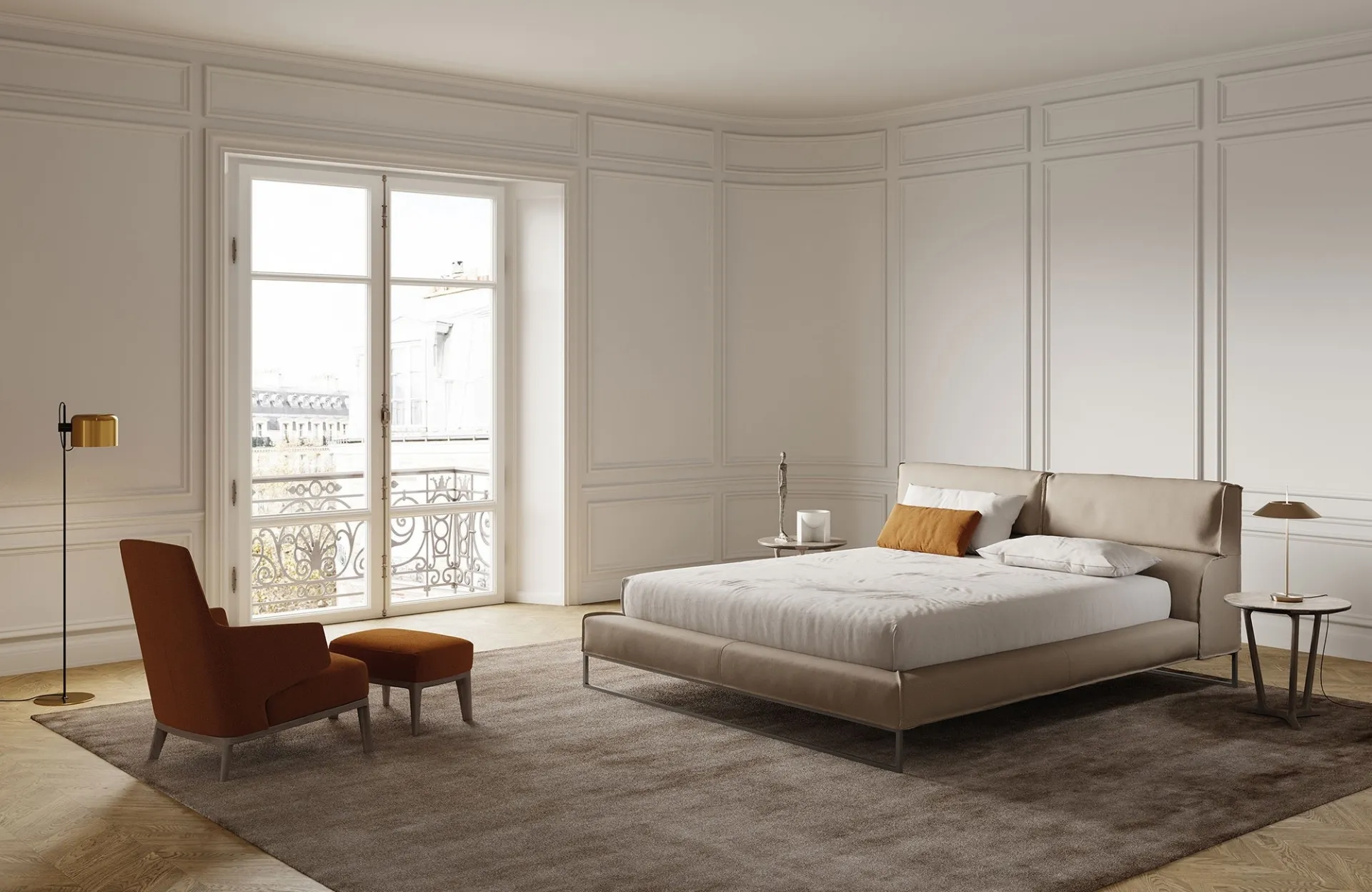 Frigerio's Cloud leather bed.