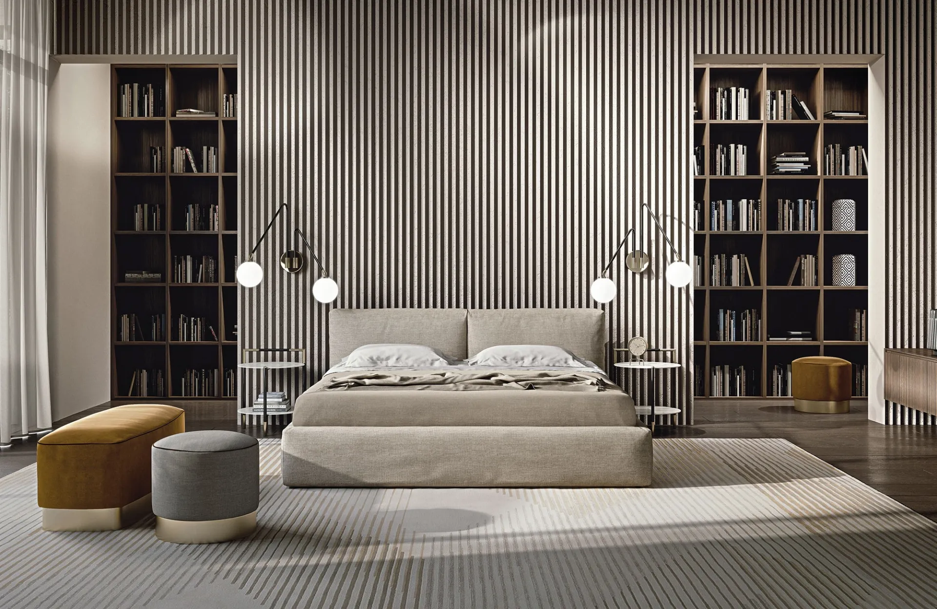 The Cooper fabric bed, among the modern double storage models by Frigerio, is designed to ensure you the deepest sleep.