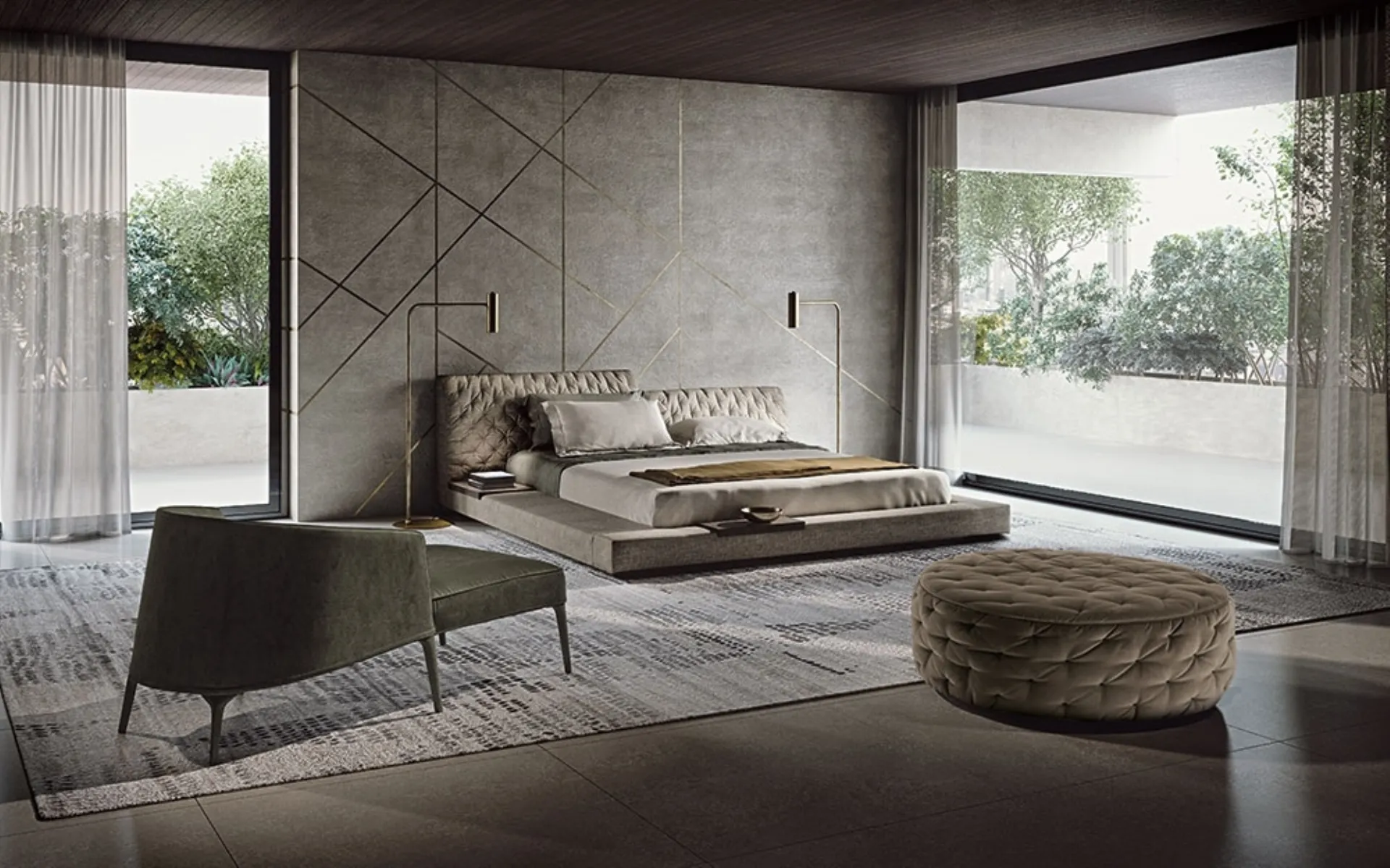 When choosing a good bed model, carefully consider its dimensions, finishes, shape, and style in relation to the rest of the furniture. The Miller design bed by Frigerio recreates a familiar and comfortable space in every bedroom, guaranteeing you the deepest sleep and a unique design. If you want a fabric solution, the model shown in the photo is characterized by durable materials and bold lines, which invite you to enjoy a peaceful and restorative rest. The brand's upholstered double beds, a leader in the production of home furnishings for the bedroom area, are designed to be paired with furniture and accessories of all kinds, such as wardrobes and dressers, lamps, and floor lamps.