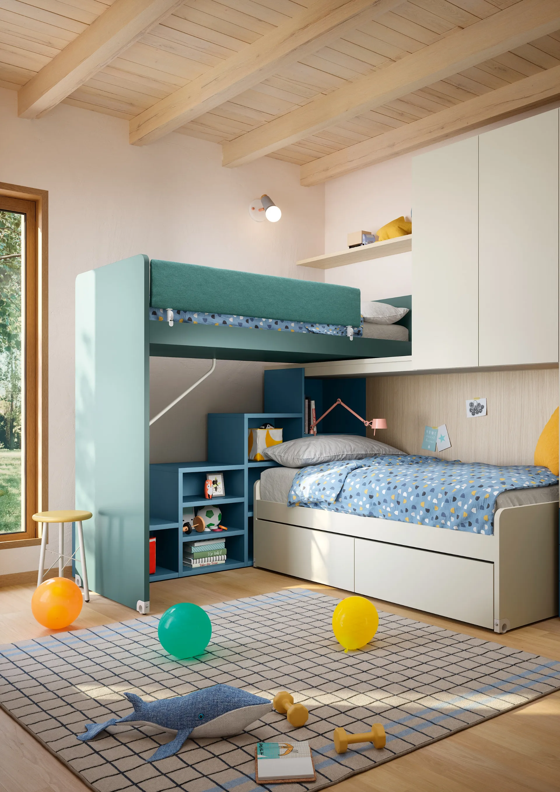 Visiting our store means seeing firsthand all the most exclusive loft bed solutions for girls in melamine that we offer in our showroom. The renowned brand presents multiple modern solutions, making the child's bedroom a space where children will be happy to grow and dream. This proposal with a melamine finish, among those for girls' loft beds from Nidi, meets both the needs of adults and the tastes of young people. With the Sliding Loft Bed Slide by Nidi, you will make your children's room a truly comfortable and safe place that will accompany them as they grow.