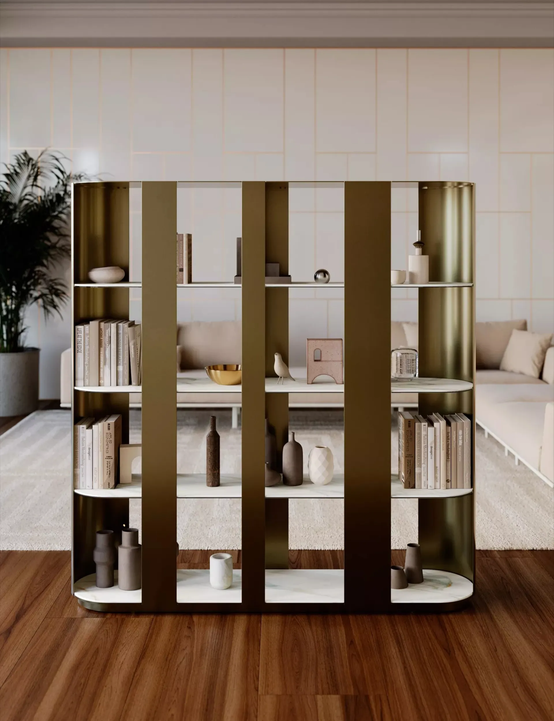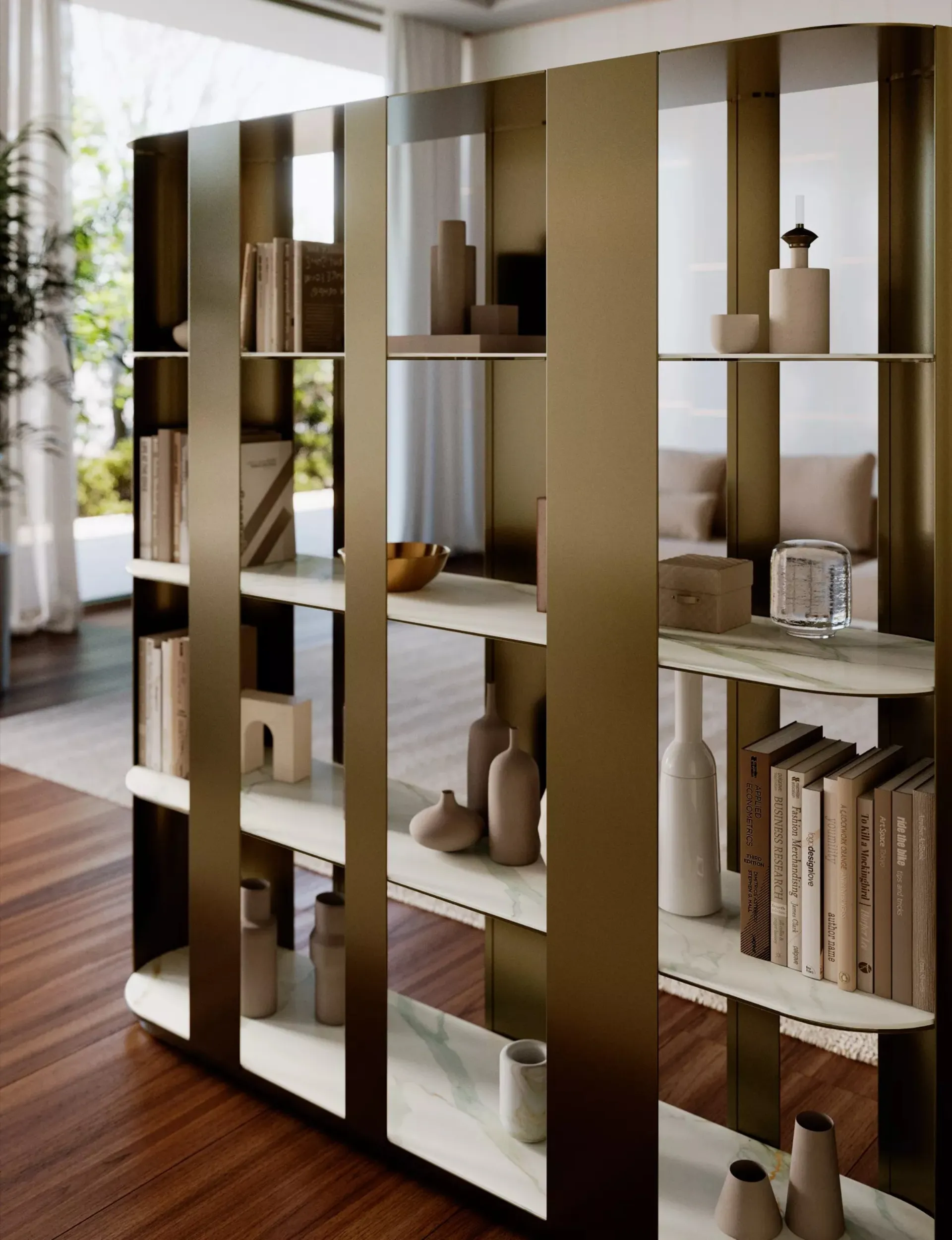 Click and discover the designer Room Divider Libraries! The Helena Bontempi model will complete a practical and functional living room.