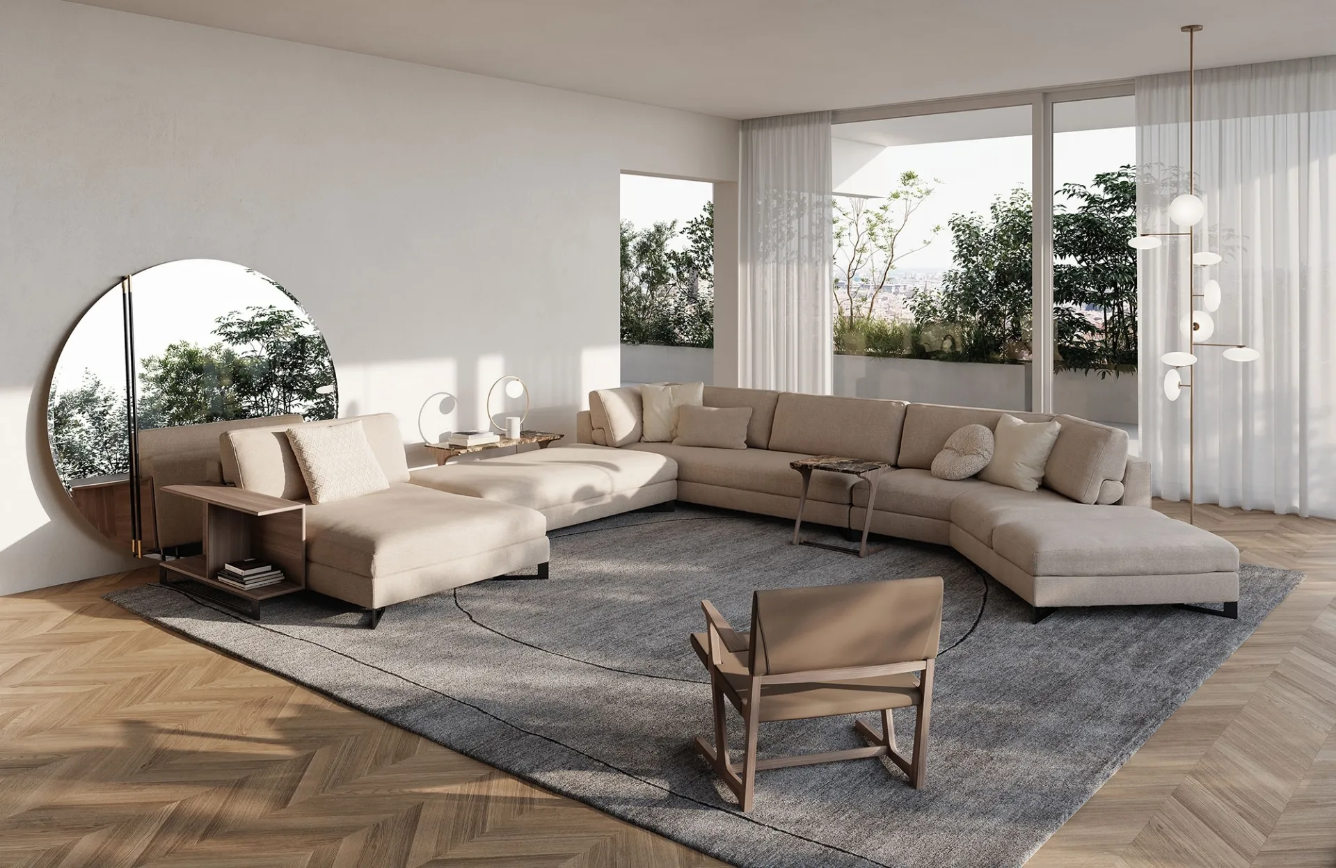 Moments of relaxation and socialization in the living room of every home are shared by relatives and friends thanks to the presence of spacious and comfortable upholstered furniture that can be placed in a corner, in the center of the room, or against the walls in front of the television. In today's homes, especially in the living room, there are always sofas and couches, comfortable and essential pieces of furniture to ensure your comfort and that of any potential guest. In our showroom, experienced furniture professionals will guide you in discovering the most exclusive proposals for designer sofas, also upholstered in fabric.