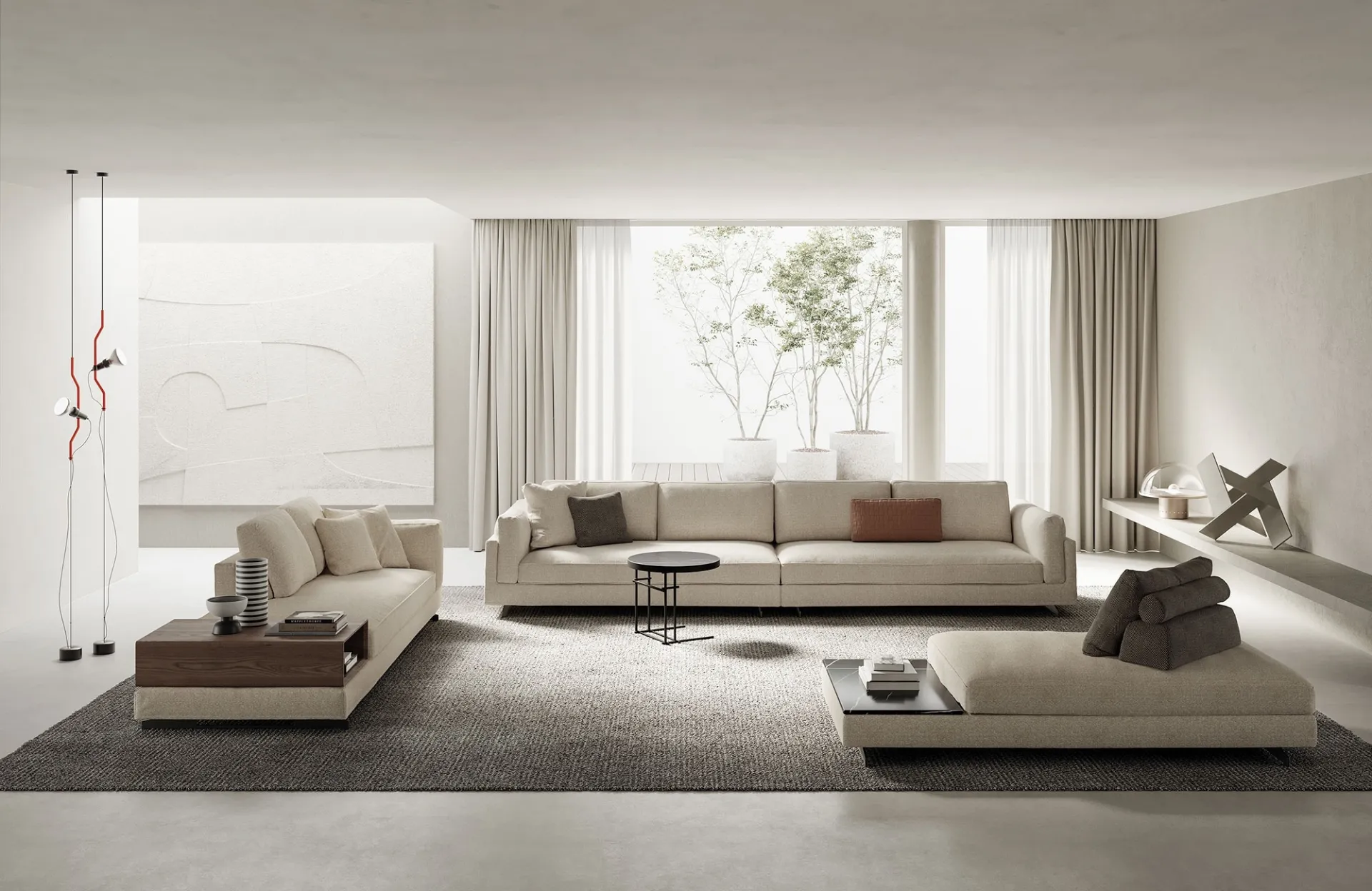 With Frigerio's linear lounges and sofas like the Davis In model in fabric, you can complete your furnishing project.