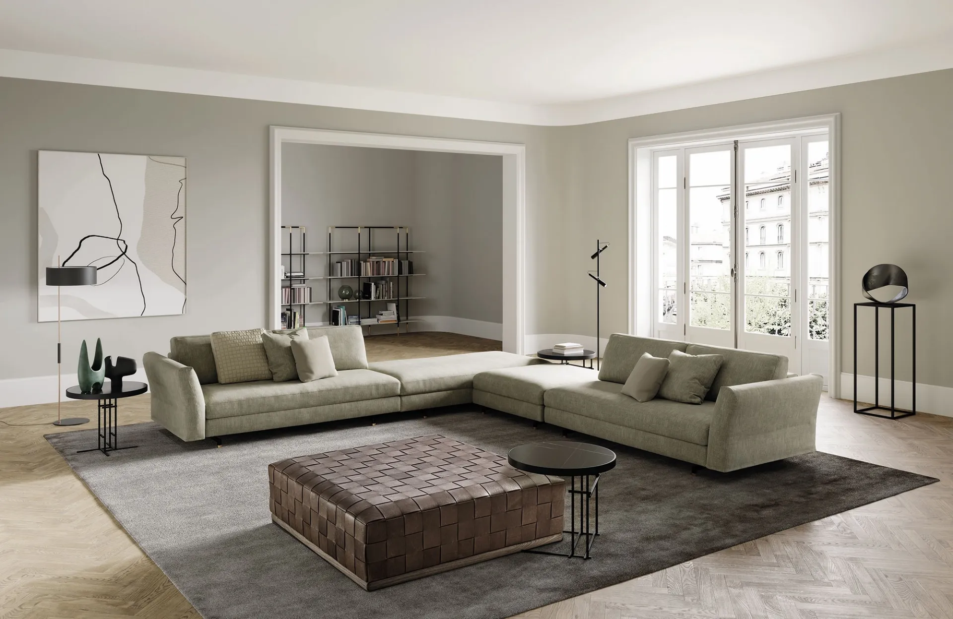 Discover a wide range of corner sofas from the best brands and enhance the living room you have always dreamed of. Frigerio, a leader in the production of sofas, has designed an elegant and sophisticated fabric covering for the model in the photograph. Frigerio's Davis Wave corner sofa: let yourself be intrigued by our proposals of designer upholstered furniture that can guarantee comfort, practicality, and design in your living room. Sofas represent a truly essential part of the living room, to be carefully arranged by placing sofas, armchairs, and ottomans.