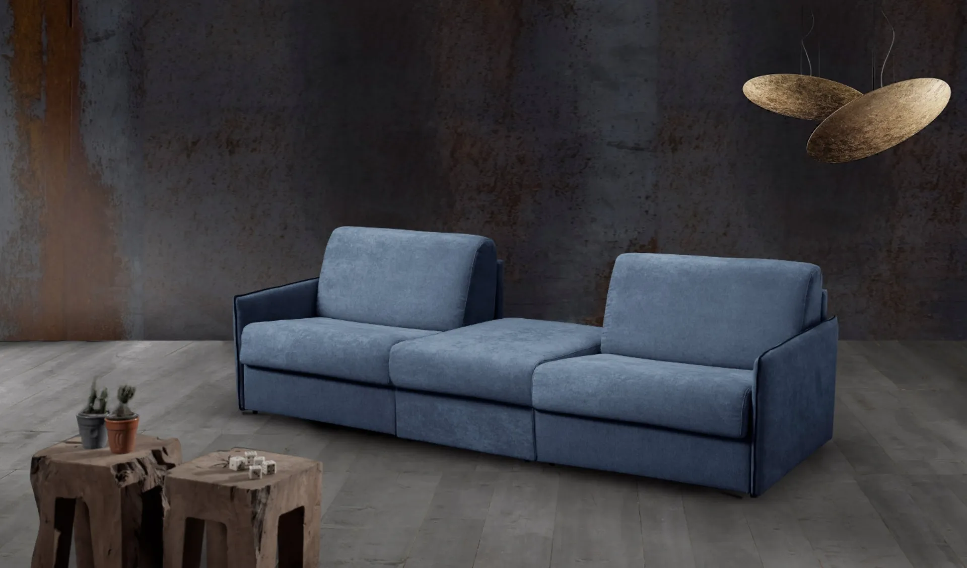 Our sofas are designed to be paired with accessories of all kinds, such as coffee tables, lampshades, and floor lamps, or in combination with additional fabric sofas. Next sofa with two single beds by Excò: creates an intimate and comfortable space in modern spaces with refined aesthetics. The brand's sofa line offers various unique possibilities for decorating the living room with functionality, comfort, and style. If you desire upholstered furniture with a bed like the model in the image, characterized by volumes that invite you to enjoy your moments of rest.