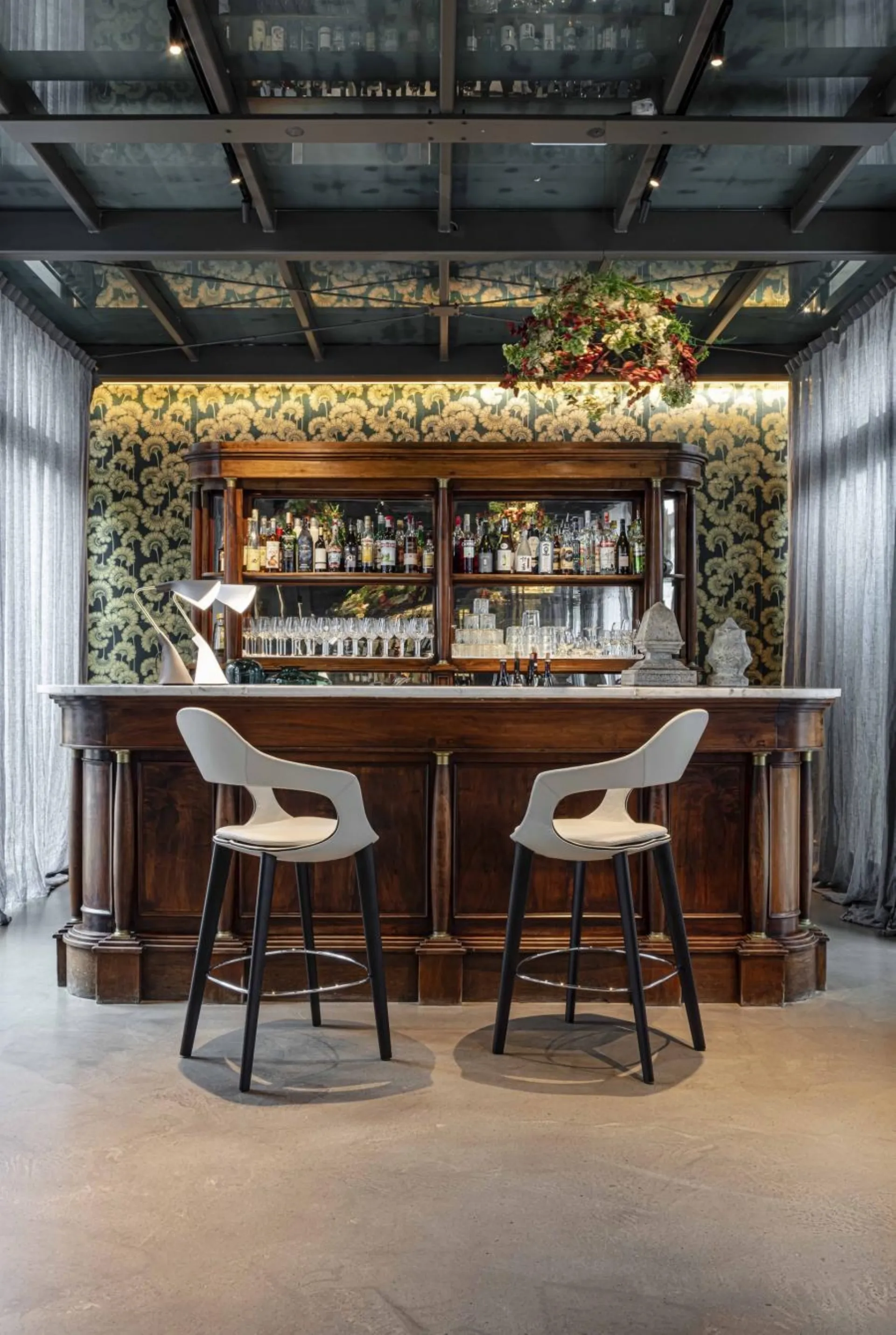 Discover the Enrico Pellizzoni modern chairs: the Frenchkiss kitchen stool model visible in the photo awaits you