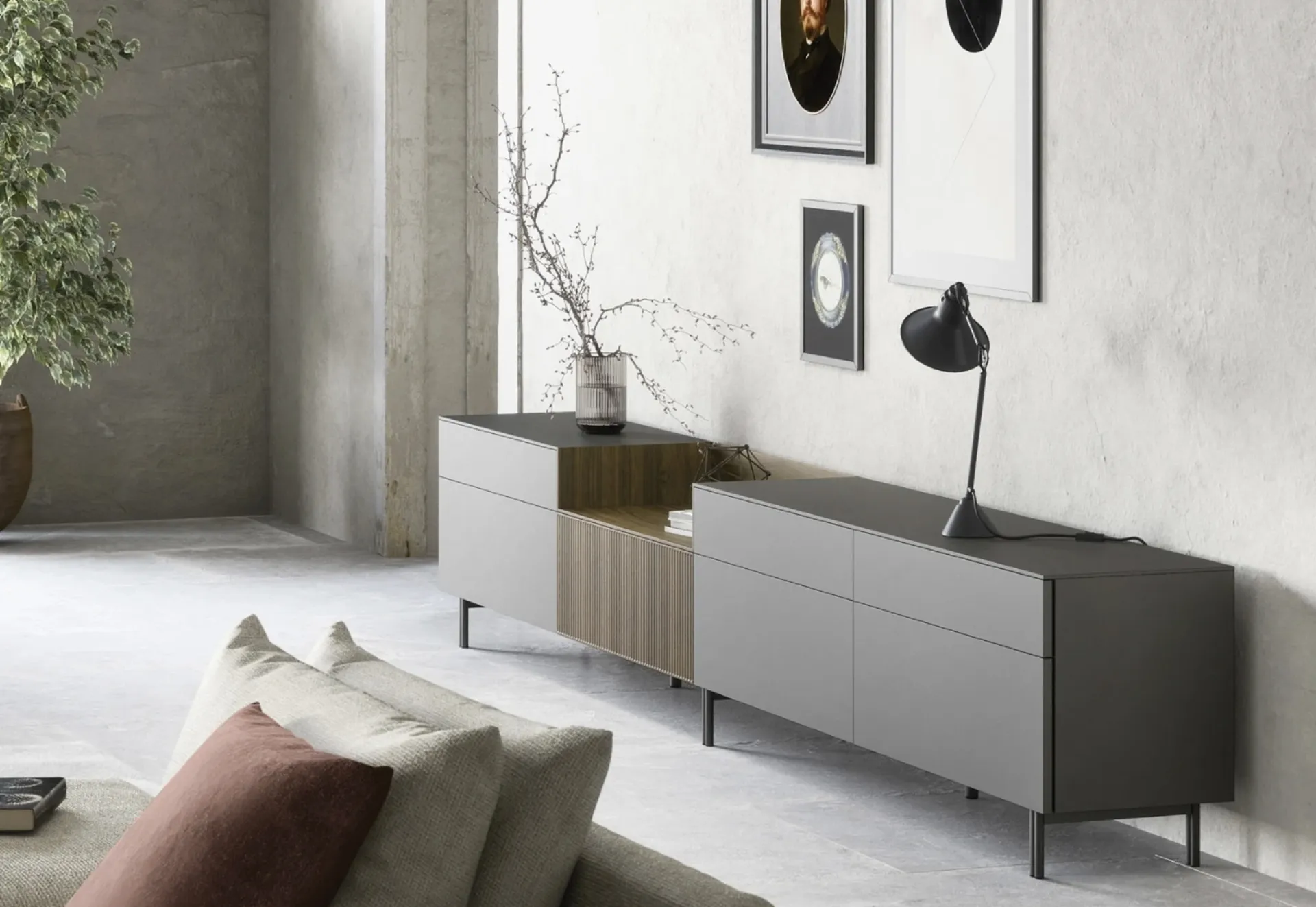 Madie help organize assorted objects, books and magazines, as well as optimize the space by perfectly combining functionality and style. The purchase of a sideboard for the living room or dining area depends on the available space, but also involves considering the style of the environment and your own needs. If you are looking for a matte lacquered sideboard to place in your home, don't miss the opportunity to see our exclusive compositions in person. Remember that you will often invite friends and family over for a few hours of company: it is essential that the space is well managed and pleasing to the eye.
