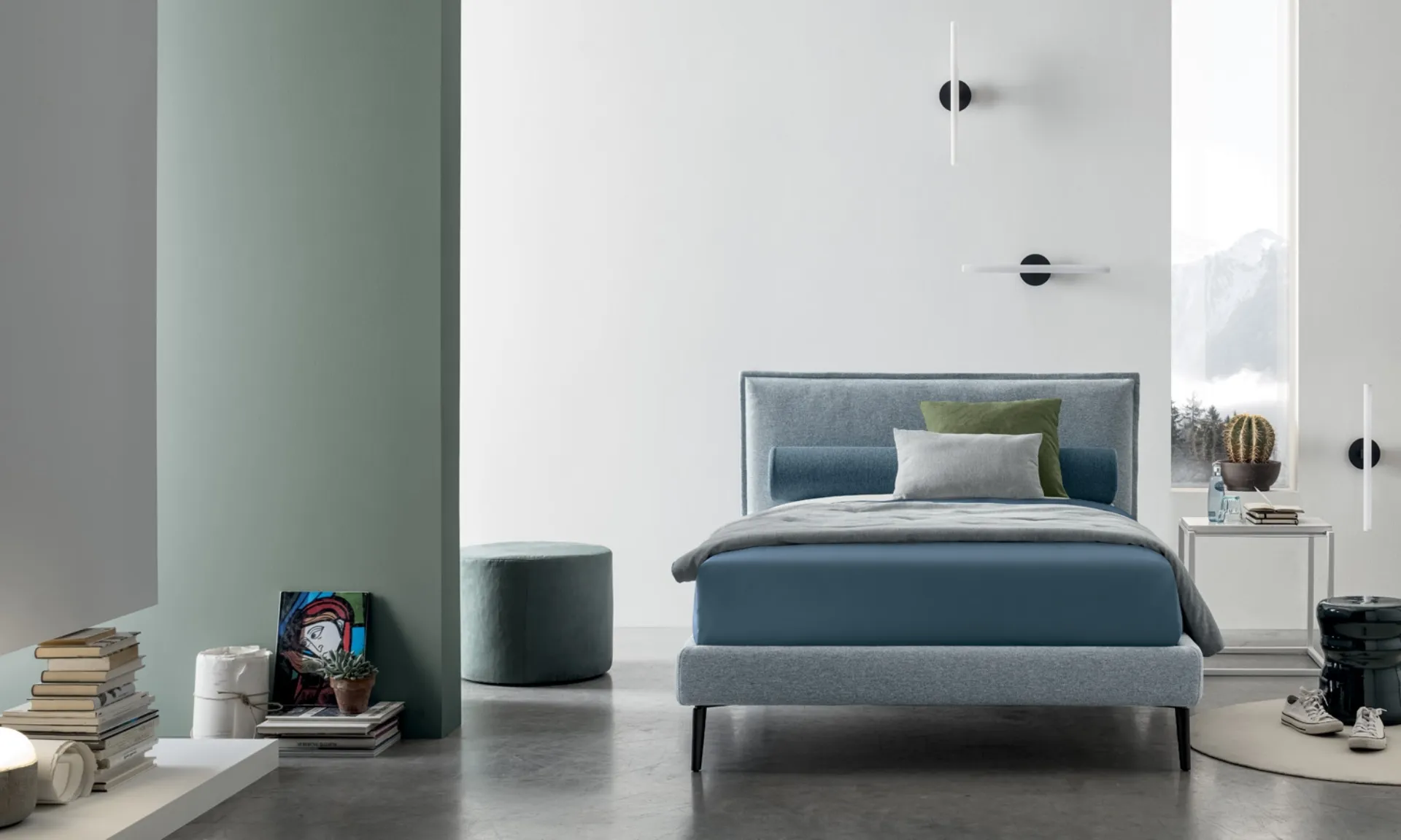 Contact us and discover more about our line of single fabric beds: furnish your child's room as you've always dreamed. If you're looking for modern furniture and accessories, the single bed in the picture is perfect for you: #belongs to@# our line of upholstered single beds. This is one of the most innovative products of the V&Nice brand, guaranteeing durability, quality materials, and a unique design.