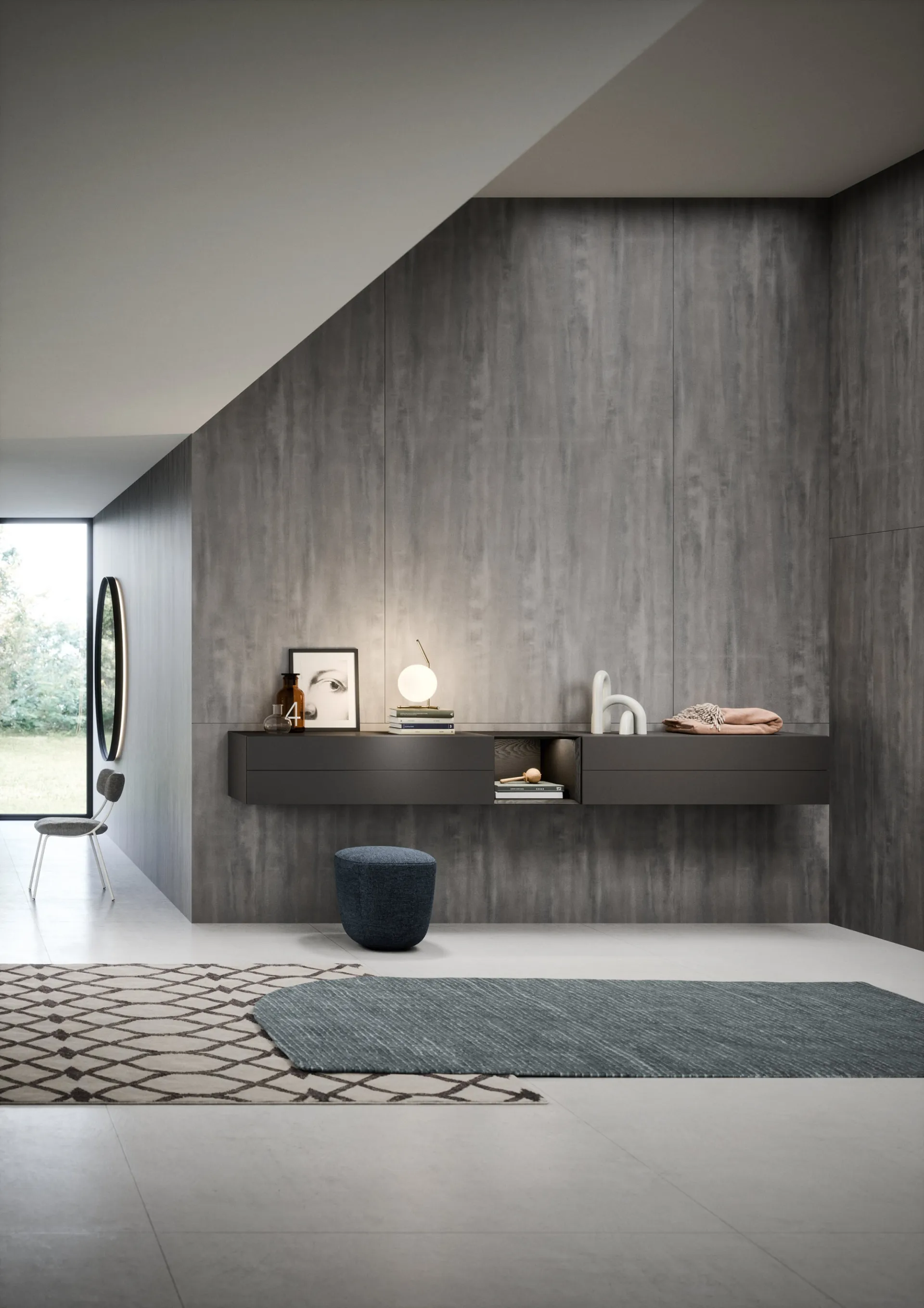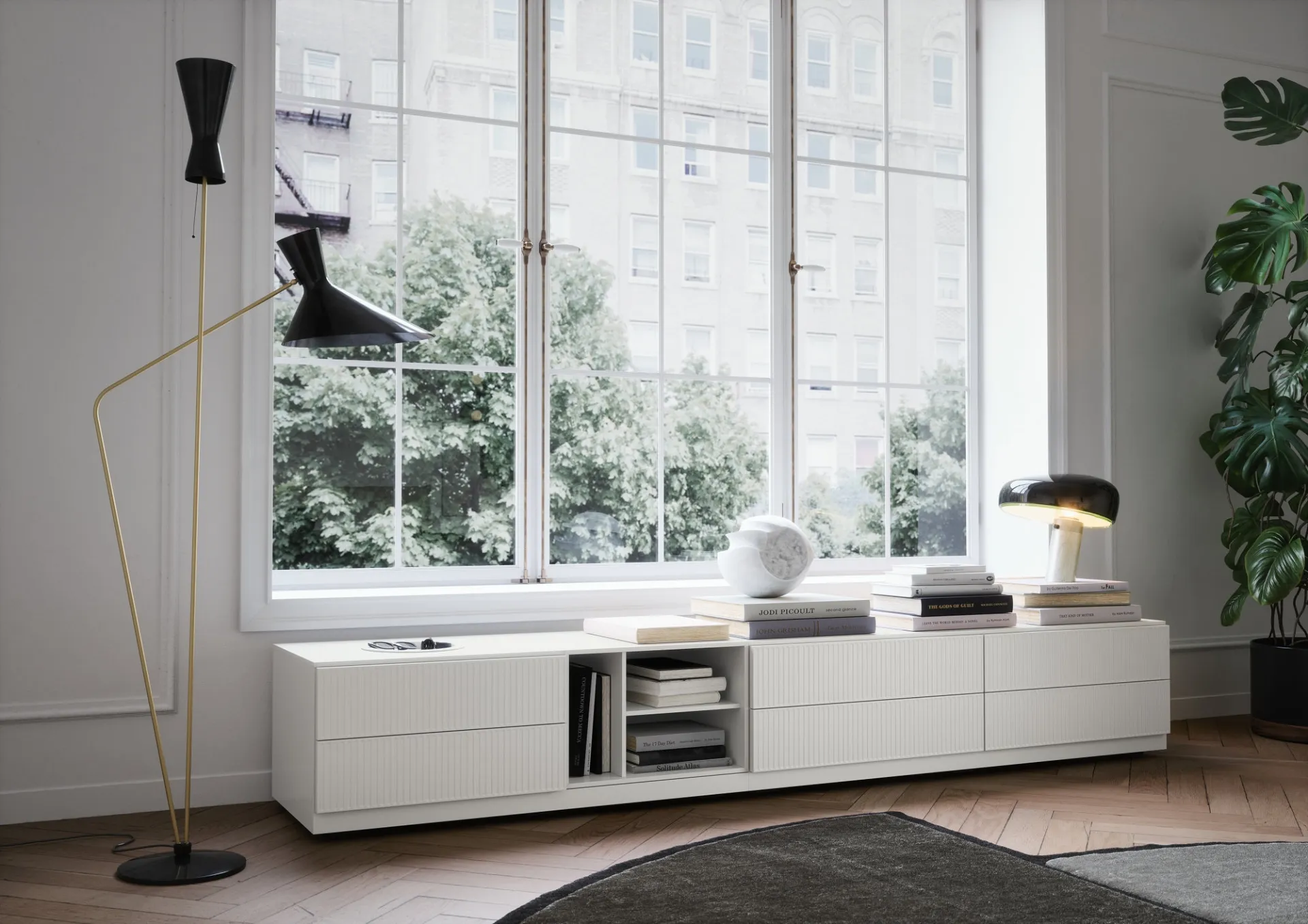 Novamobili wall units in matte lacquer: click and discover more about the Easy System model, designed to enhance modern spaces.