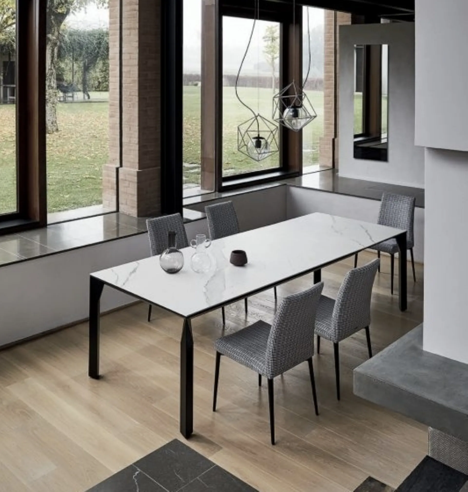 Do you want more information about the Mirage dining table by Bontempi? Click to get information about the brand's fixed models.