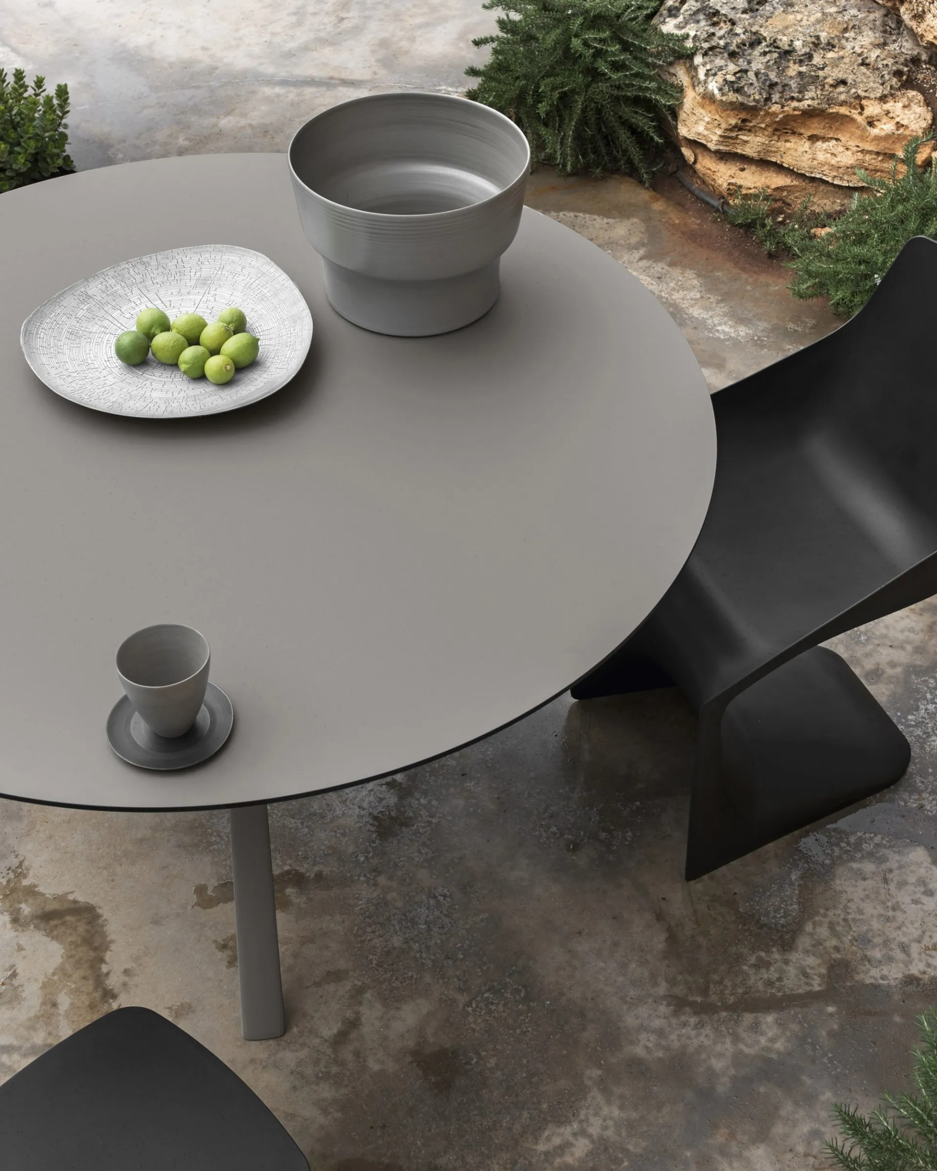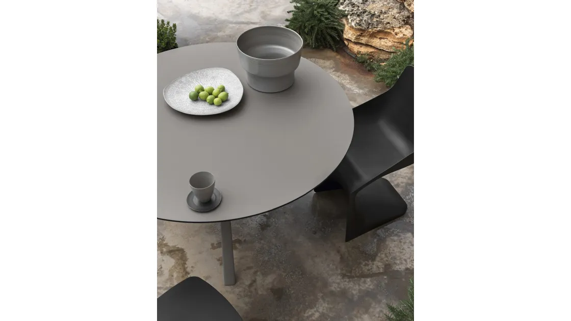 Discover our collection of modern fixed tables, where you can also find the round Oops model in the photo