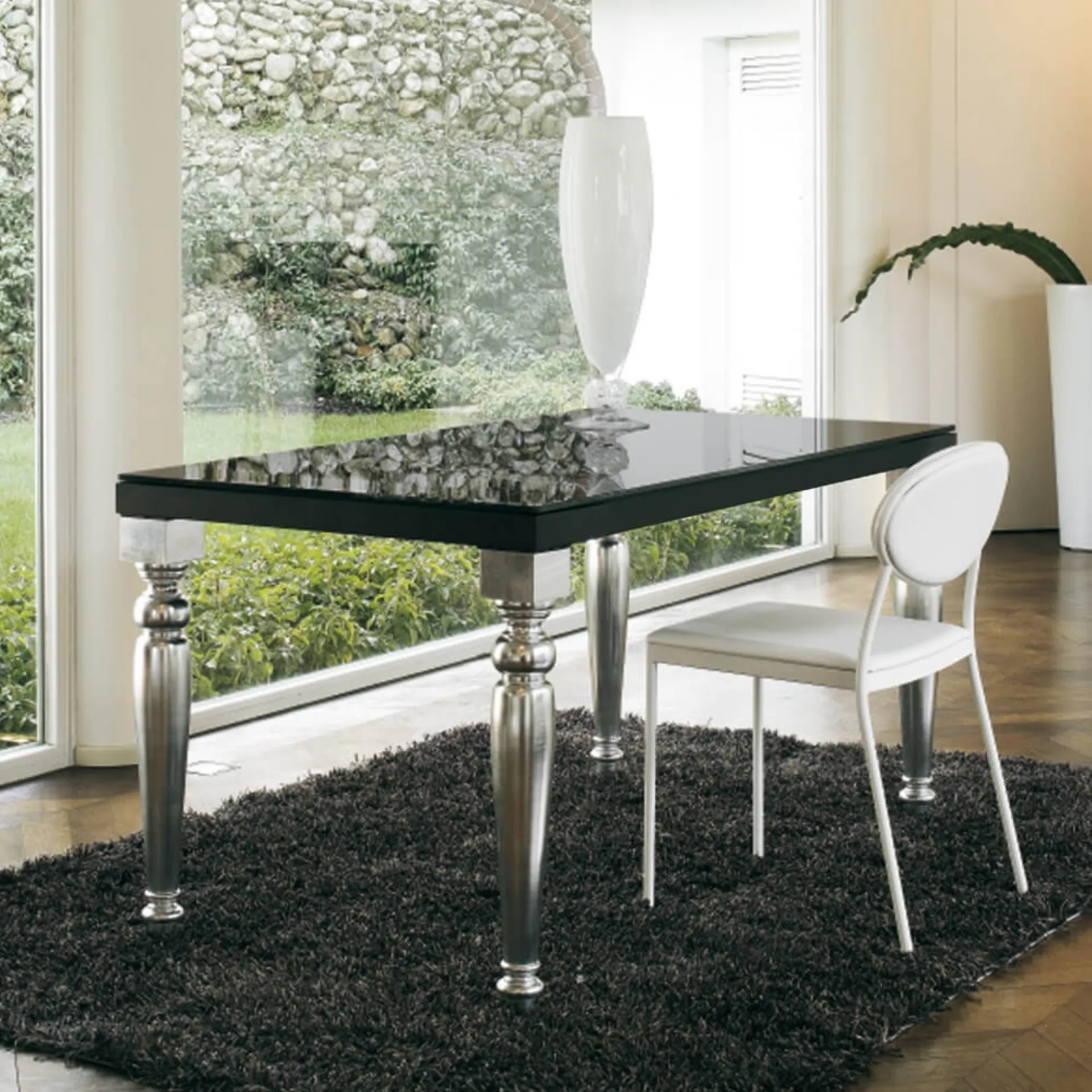 If you are looking for classic fixed tables, here is the Praga2 glass dining model by the brand Ponti Terenghi.